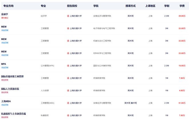 办学特色:上海交通大学是工科强校,其在职研究生项目在工程技术、管理科学、商学等领域具有显著优势。
