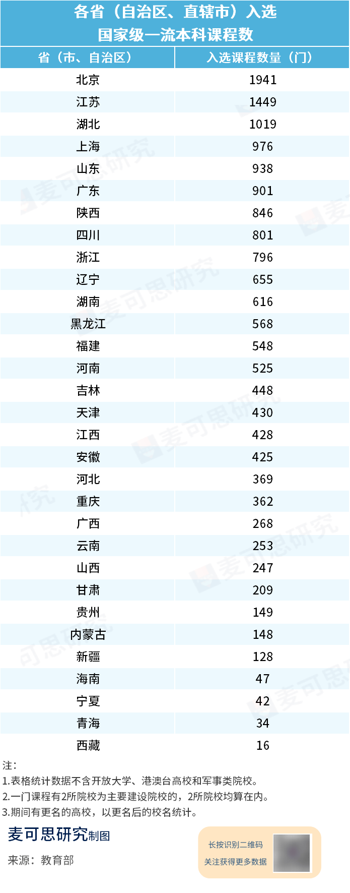日前,教育部网站发布了《关于第三批国家级一流本科课程认定结果的公示》,公示提到拟认定5999门课程为第三批国家级一流本科课程。其中,线门,虚拟仿线门,线门,线门。根据教育部公布的三批国家级一流本科课程名单,共有16865门课程入选(首批5116门、第二批5750门、第三批5999门)。麦可思研究对入选名单进行了整理,发现——